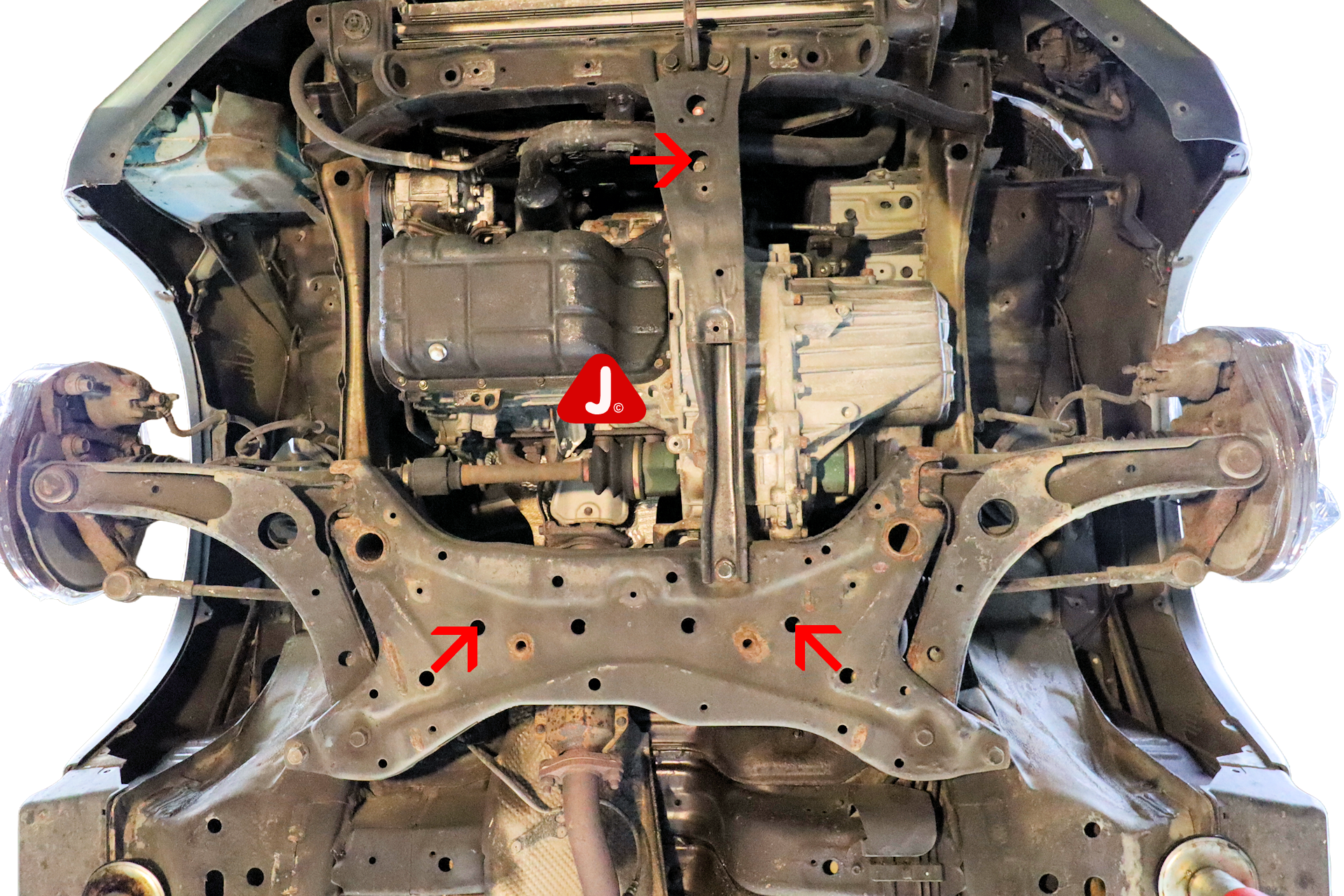 Motorbundpladen afmonteres, og forbroens indvendige del behandles gennem eksisterende huller.